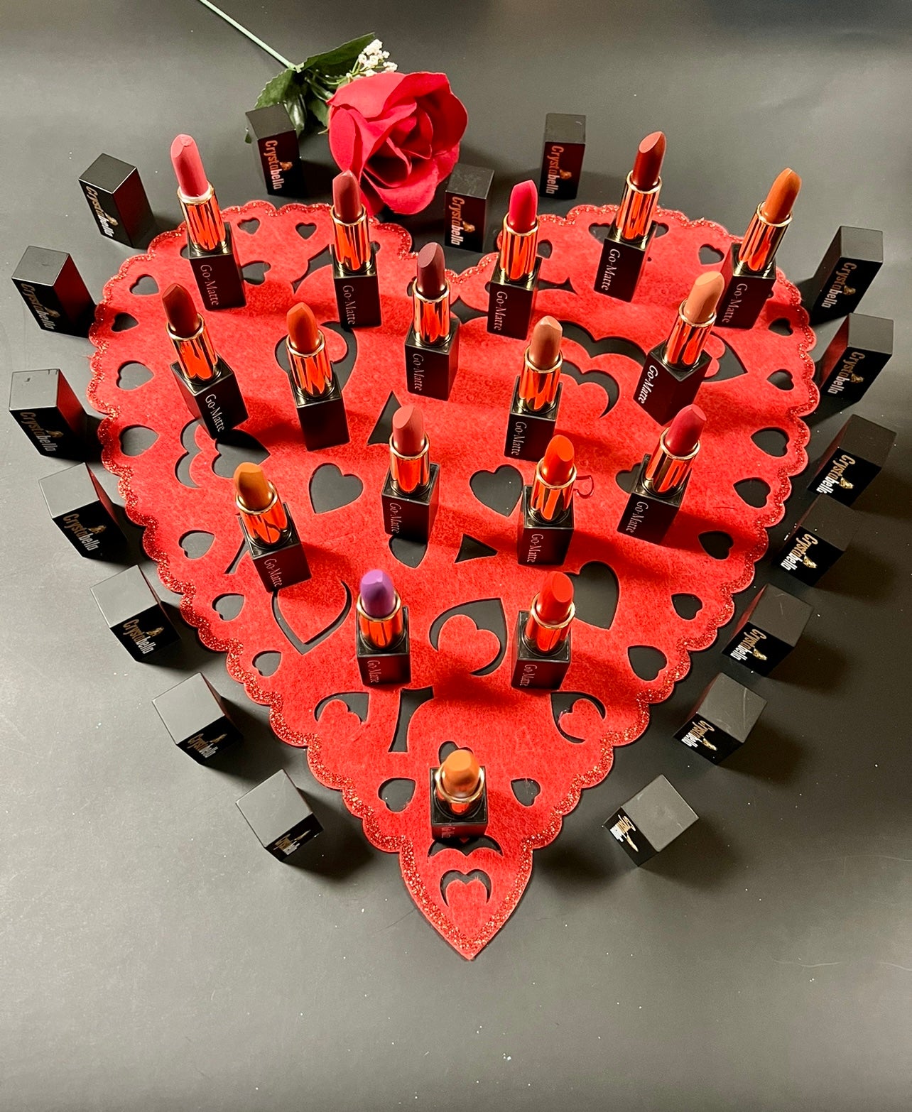 Our Go-Matte Lipsticks are luxuriously pigmented to give you that radiant finishing for all day wear with no flakes or cracks. Keeps the lips well moisturized.